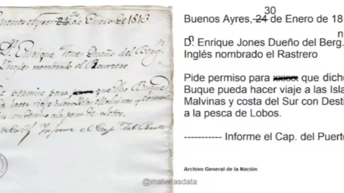 Un archivo inédito de 1813 volvió a aportar evidencia clave al reclamo argentino sobre las Islas Malvinas. Se trata de una solicitud formal presentada por un capitán británico ante las autoridades de Buenos Aires, en la que reconoce explícitamente la autoridad de las Provincias Unidas del Río de la Plata sobre el archipiélago.